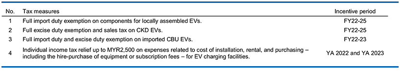 - Extension of the 100% sales tax exemption on CKD passenger vehicles and 50% on CBU vehicles – including SUVs and MPVs – for six months until 30 Jun 2022.