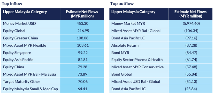 While funds were pouring into the USD Money Market, Malaysian Money Market funds saw a massive outflow, with net redemptions of close to RM6 billion. The movement was largely caused by institutional investors, though. If we were to remove their movements from our tracking, we would see net inflows of nearly RM300 mil.