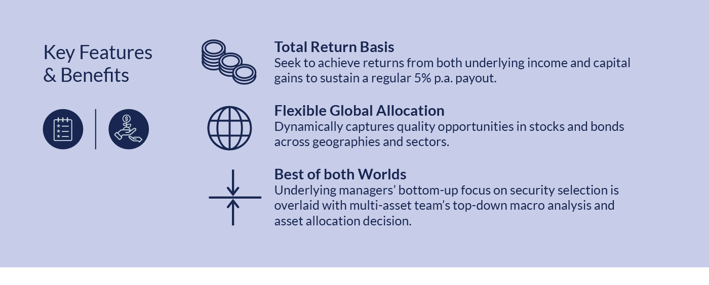 For investors seeking a more moderate approach, we present the TA Total Return Income Fund. This is a global mixed-asset fund managed by Fullerton. This is an income fund where the fund aims to pay a monthly distribution of 5% pa from its NAV.