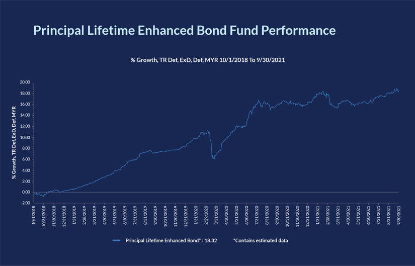 If none of these equities-related options are suitable, there’s always fixed income. Investors who wish to focus on fixed income assets may consider the Principal Lifetime Enhanced Bond Fund. The fund focuses its investments in the Malaysian fixed income market, with a mandate allowing the fund manager to spice up the portfolio returns by investing up to 10% in the Malaysian equity market. The fund has generated 18.32% in the past three years.