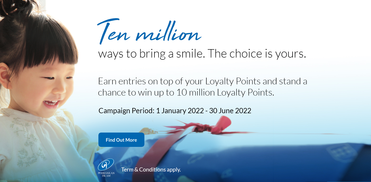 From now until 30 June 2022, you can earn additional entries - on top of the perpetual Loyalty Points and stand a chance to win up to 10 million RHB Loyalty Points!