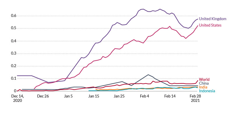 2Bloomberg, More than 271 million shots given: Covid-19 tracker, updated 4 March 2021.
