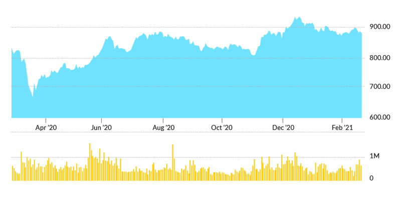 Covid-19 has acted as an accelerator of disruptive technologies and valuations of tech stocks have soared. Google’s share price has soared 45% over the last 12 months, closing at USD2,011.41 on 3 March 2021.