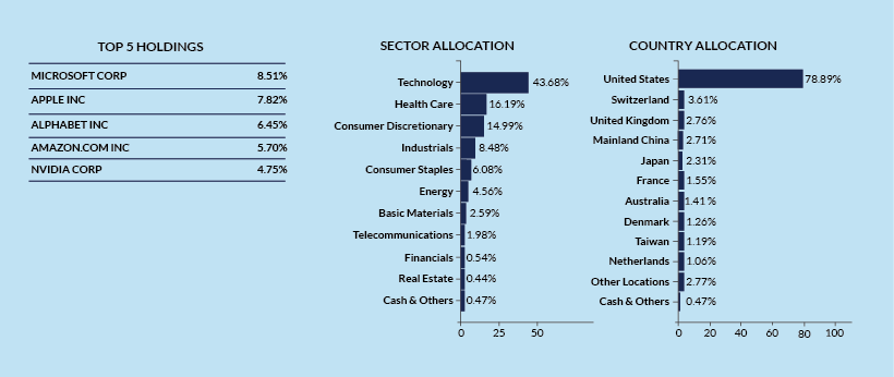 The fund’s strategy is concentrated on major tech companies, aiming to attain returns that surpass the broader market. It ticks all the boxes for powerful secular themes, including Fintech, Internet 3.0, Next Generation Infrastructure, AI & Process Automation, and Electrification, all of which are pivotal drivers for sustained sector growth.