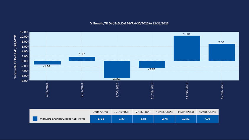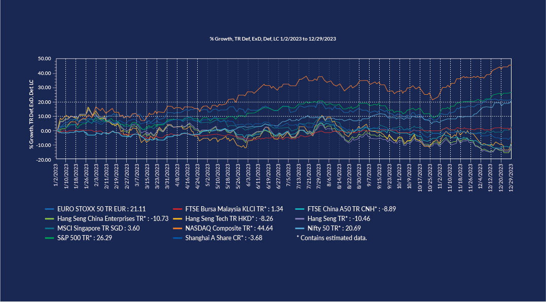 The continued instability in China and geopolitical tensions in the Middle East placed pressure on global economic growth. The fourth quarter of 2023 started off on a slow burn, with mixed view on the Fed’s monetary policy stance. However, soon after the expectations of a peak in the rate hike and market starts to price in prospect of multiple rate cuts in 2024, asset and portfolio values rose, closing most market higher with exception of the Chinese equity market.