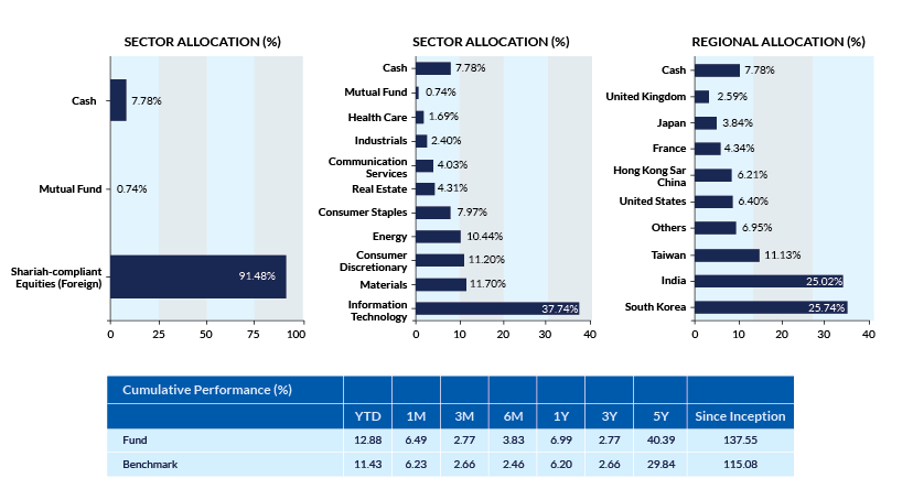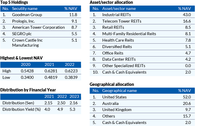 A Product Highlights Sheet (“PHS”) highlighting the key features and risks of the TA Global Technology Fund dated 30 October 2023, RHB Global Shariah Equity Index Fund dated 16 November 2020, Manulife Shariah Global REIT Fund dated 20 October 2023, RHB American Income Fund dated 21 January 2020, and Principal Islamic Asia Pacific Dynamic Equity Fund dated 5 September 2023. (“Fund”) is available and investors have the right to request for a PHS.