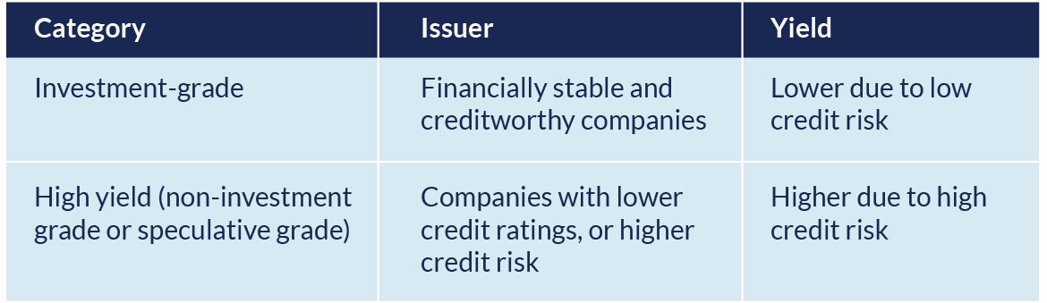 This table explains the differences between investment-grade and high yield corporate bonds/sukuk.