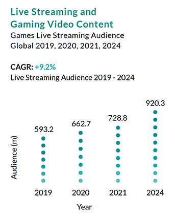 Live streaming had an audience of 662.7 million in 2020 and this audience is expected to grow to 920.3 million in 2024. In light of the new developments in live streaming, Newzoo has expanded its annual Global Esports Market Report into the Global Esport and Live Streaming Market Report in 2021.
