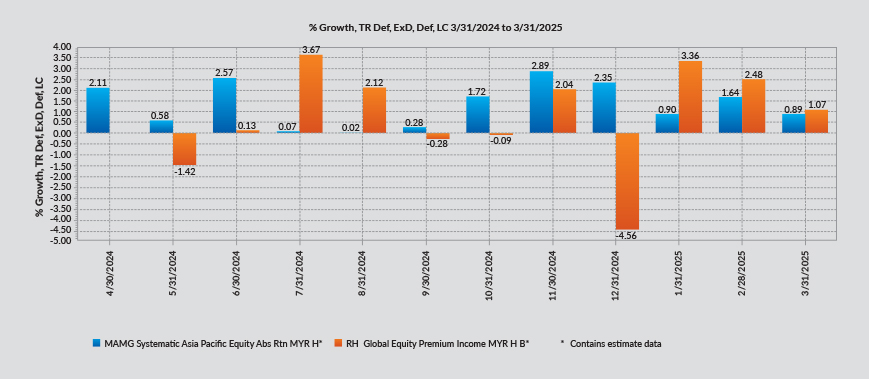 The Manager wishes to highlight the specific risks of the RHB Global Equity Premium Income Fund are Fund Management Risk, Liquidity Risk, Currency Risk, Country Risk, Interest Rate Risk, Suspension of Redemption Risk, and Distribution out of Capital Risk. The specific risks of MAMG Systematic Asia Pacific Equity Absolute Return Fund are Concentration Risk, Default Risk, Counterparty Risk, Country Risk, Currency Risk, Derivatives Risk, and Investment Manager Risk. The specific risks of the RHB Dynamic Artificial Intelligence Allocator Fund, which are Liquidity Risk, Currency Risk, Country Risk, Interest Rate Risk, Credit and Default Risk, Financial Derivatives Risk, Equity Risk, Equity-Related Securities Risk, Collective Investment Schemes Risk, Concentration Risk, Distribution Out of Capital Risk, and Risk of Over-Reliance on the Artificial Intelligence Risk Model. The specific risks of RHB US Growth Fund, which are Fund Management Risk, Liquidity Risk, Currency Risk, Country Risk, Financial Derivatives Risk, Credit and Default Risk, Interest Rate Risk, and Suspension of Redemption Risk. The specific risks of Manulife India Equity Fund are Manager’s Risk, Market Risk, Loan or Financing Risk, Suspension/Deferment of Redemption Risk, Country Risk, Currency Risk, Liquidity Risk, Risk Considerations for Investing in Derivatives, Target Fund Manager Risk, Stock Specific Risk, Taxation Risk/ Withholding Tax Risk, and other general risks are elaborated in the Information Memorandum.