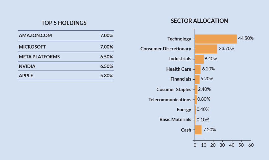 - Exposure to AI-driven innovation, semiconductors, and top U.S. tech giants