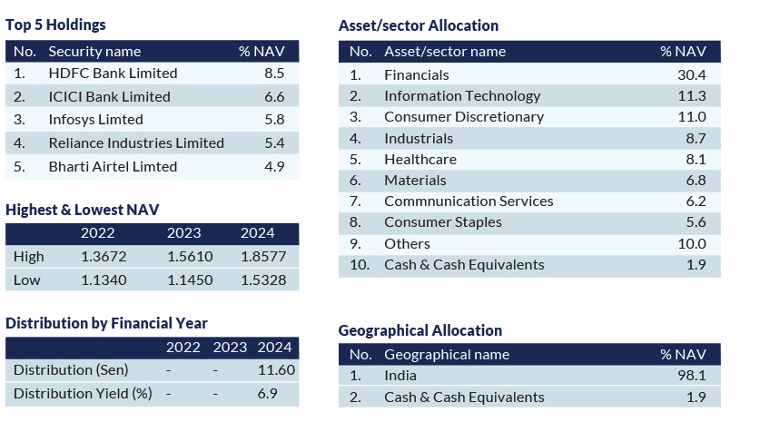 - Exposure to high-quality Indian companies across financial services, technology, and consumer sectors