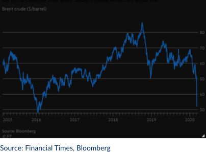 Most recently, a further plunge of oil prices has rattled the market further. On March 6, 2020, the alliance of the Organisation of the Petroleum Exporting Countries’ (OPEC+) meeting in Vienna led to Saudi Arabia and Russia disagreeing on further production cuts beyond March 31. Consequently, oil prices crashed by the highest single day decline since 1991. Combined with the COVID-19 outbreak, the latest oil price crash has dented market sentiment further.