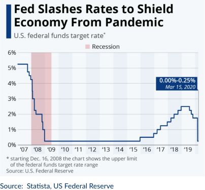 Central banks around the world have lowered interest rates to spur their respective economies. In a historic move to counter the impact of the ongoing COVID-19 pandemic on the US and global economy, on 16 March 2020 its central bank the Federal Reserve (US Fed) slashed interest rates to practically zero and announced a US$700 billion quantitative easing programme. The new rate is used as a benchmark for short term lending by financial institutions and as a peg to many consumer rates.