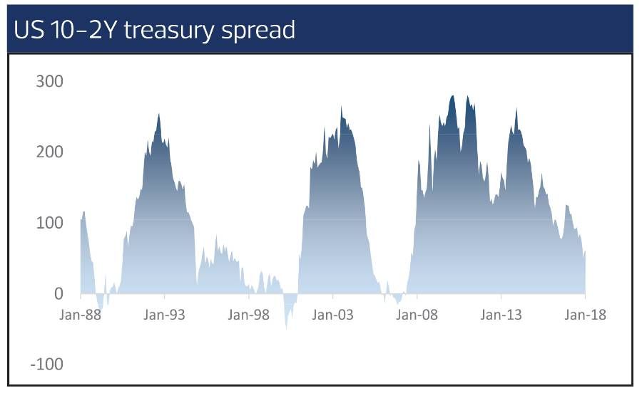 The RHB Wealth Research team also believes that the market will need to brace for a correction in 2018, but its impact will be softened as long as earnings and sales continue to grow healthily. According to the team, the US treasury 10Y2Y spread will serve as one good indicator to monitor animal spirits moving forward as the negative spread has a general tendency indicating a downturn.