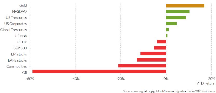 Gold has maintained its position as a safe investment vehicle, even through market dips, compared with other forms of investment. Year-to-date, it has outperformed other traditionally “safer” investments such as government bonds, yielding returns in the high teens.