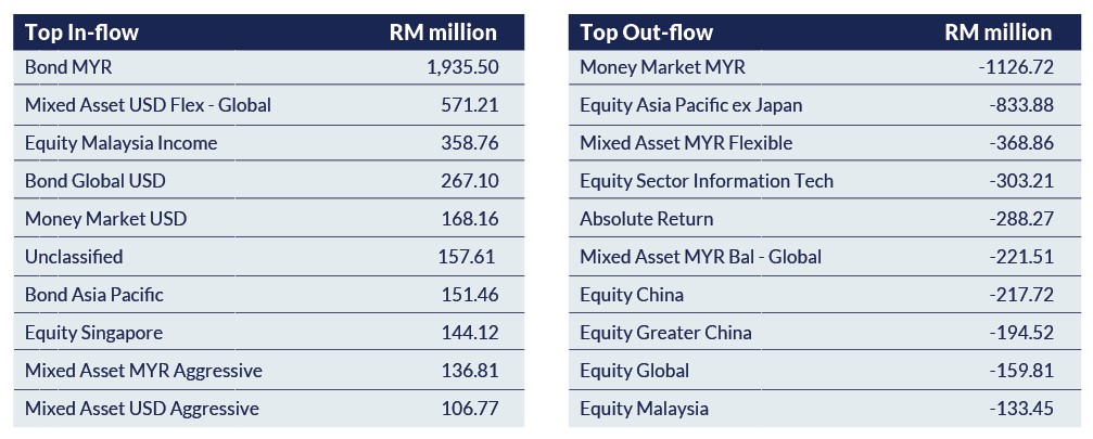 In general, investors are seeking stability and income generating type of investment. The majority of inflows were towards fixed-income funds, including those focused on Malaysia and the global market. This trend reflects investors positioning ahead of potential interest/profit rate cuts, showcasing a cautious yet optimistic approach to future market conditions.