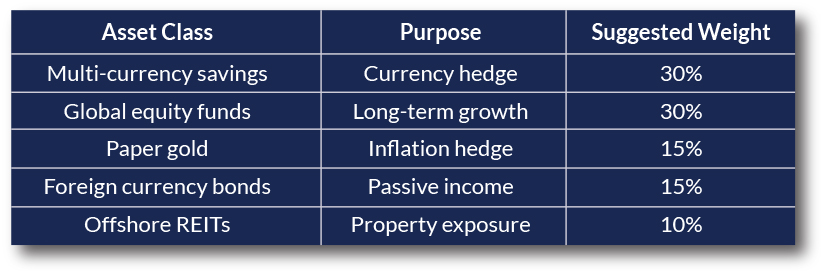 Here’s what a currency-shielded portfolio might look like (actual results may vary, depending on your risk profile and goals):