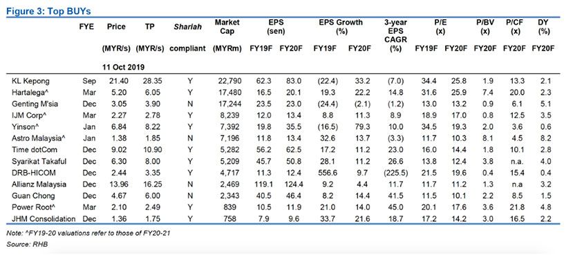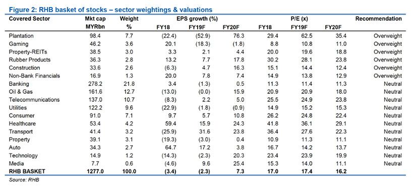 A trader’s market in a low-yield, low-growth world. The local market has lagged on growth concerns and unattractive valuations, exacerbated by various external and domestic worries. A likely US-China trade truce looks far from being comprehensive, and leaves in place existing punitive tariffs that will weigh on global growth in 2020. Bottom-up stock-picking will be key, focusing on quality laggards, resilient yield plays and defensive stocks as tactical options. Small- and mid-caps offer more robust growth at sensible valuations. We are OVERWEIGHT on construction, gaming, rubber gloves, NBFIs and REITs. We make no change to our end-2019 FBM KLCI target of 1,620 pts.