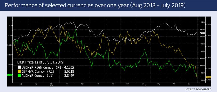 In January, the Australian dollar fell to its lowest level in 10 years against the US dollar due to weak manufacturing results in China and concerns about global growth. The currency was further impacted in June when the Reserve Bank of Australia cut its interest rates for the first time in almost three years to a record low of 1.25%. This caused the Australian dollar to depreciate by 1% against the ringgit on a year-to-date basis (as at June 30, 2019) and 3.03% over one year (as at June 30, 2019).