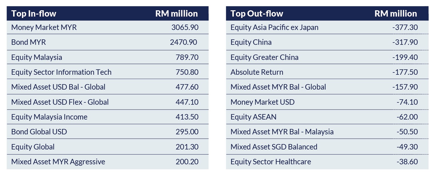 There was a significant inflow into Malaysian fixed income funds, outperforming global fixed income. Investors are positioning themselves to benefit from potential rate cuts that could bolster fixed income markets in the near term. The region’s mixed signals led to a net outflow of nearly RM900 million from the Chinese and Asia Pacific funds, indicating a cautious investor sentiment. The overall trend points to cautious investor sentiment, potentially driven by global market volatility, economic uncertainty in key regions, or shifting preferences toward safer or more opportunistic investment strategies.