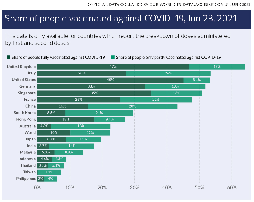 The surge in new cases in Asia has eased, but the elevated number of Covid-19 cases in parts of Asia will continue to undermine investor confidence in the short term. The good news is that the vaccine rollout in the region has gained momentum.